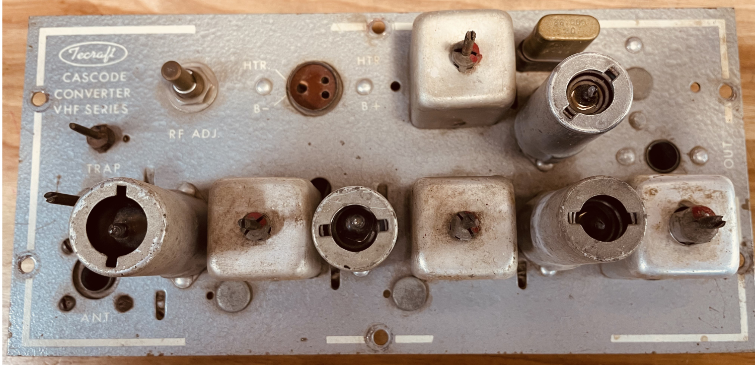 Tecraft produced VHF preamps, VHF converters and VHF transmitters in the 1950s and 60s. The company advertized in most of the better known amateur radio magazines, including QST, 73 and CQ. The converters were intended to be used with a communcations receiver that tuned, in this particular case, 14-18Mhz for the 50-54Mhz 6 meter band by using a 36Mhz crystal. Other receiver frequencies could be used with a change of crystal frequency on the converter. Tecraft later moved to using nuvisors instead of vacuum tubes in their converters and preamps